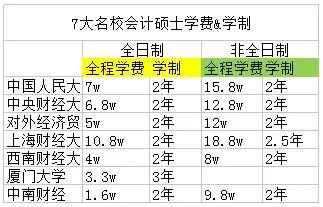 二、7大名校会计硕士学费&学制