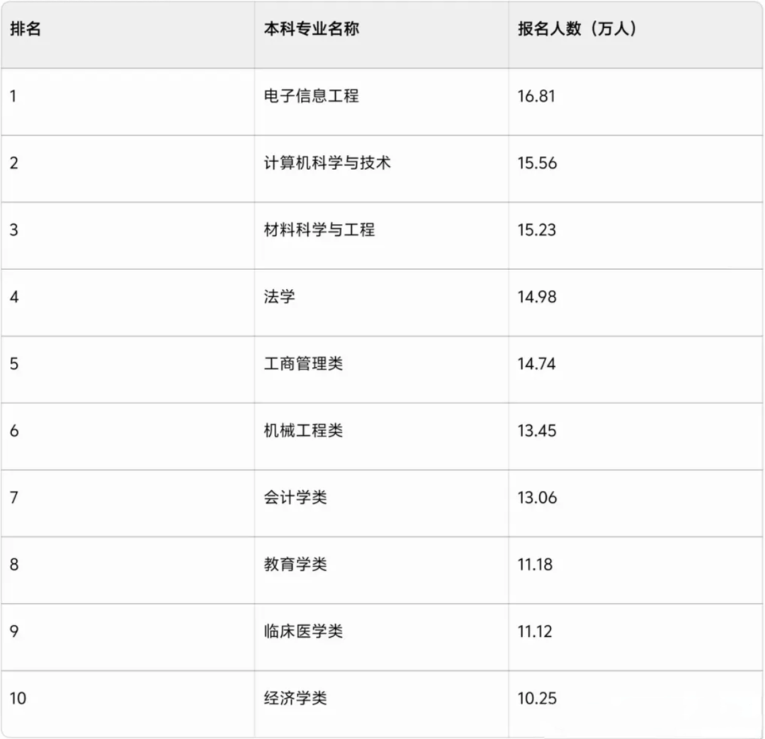 位居榜首的是电子信息工程(16.81万人),其次是计算机科学与技术(15.56万人) 和材料科学与工程(15.23万人) 。这些所谓的“热门专业”,其实反映了就业市场的残酷现实。